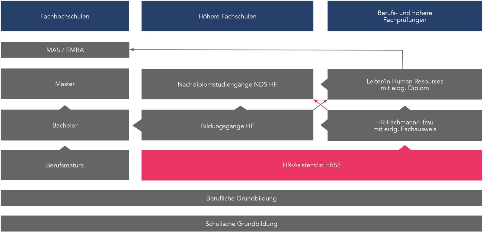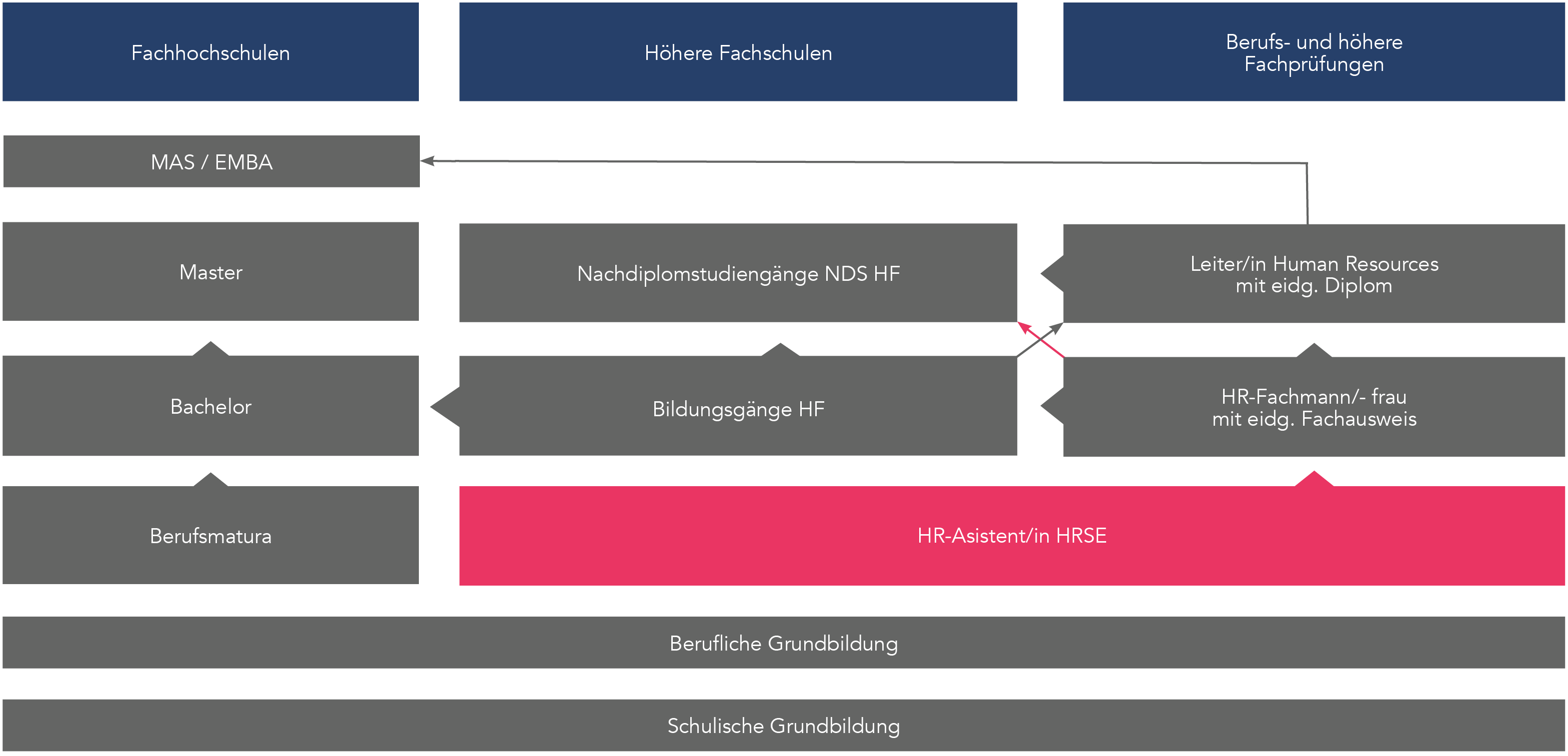 Die Zertifikatsprüfung HR-Assistent/in HRSE bereitet auf die eidgenössische Ausbildung HR-Fachmann/-frau mit eidg. Fachausweis vor und ist Pflicht für die Teilnahme an der eidg. Prüfung.
